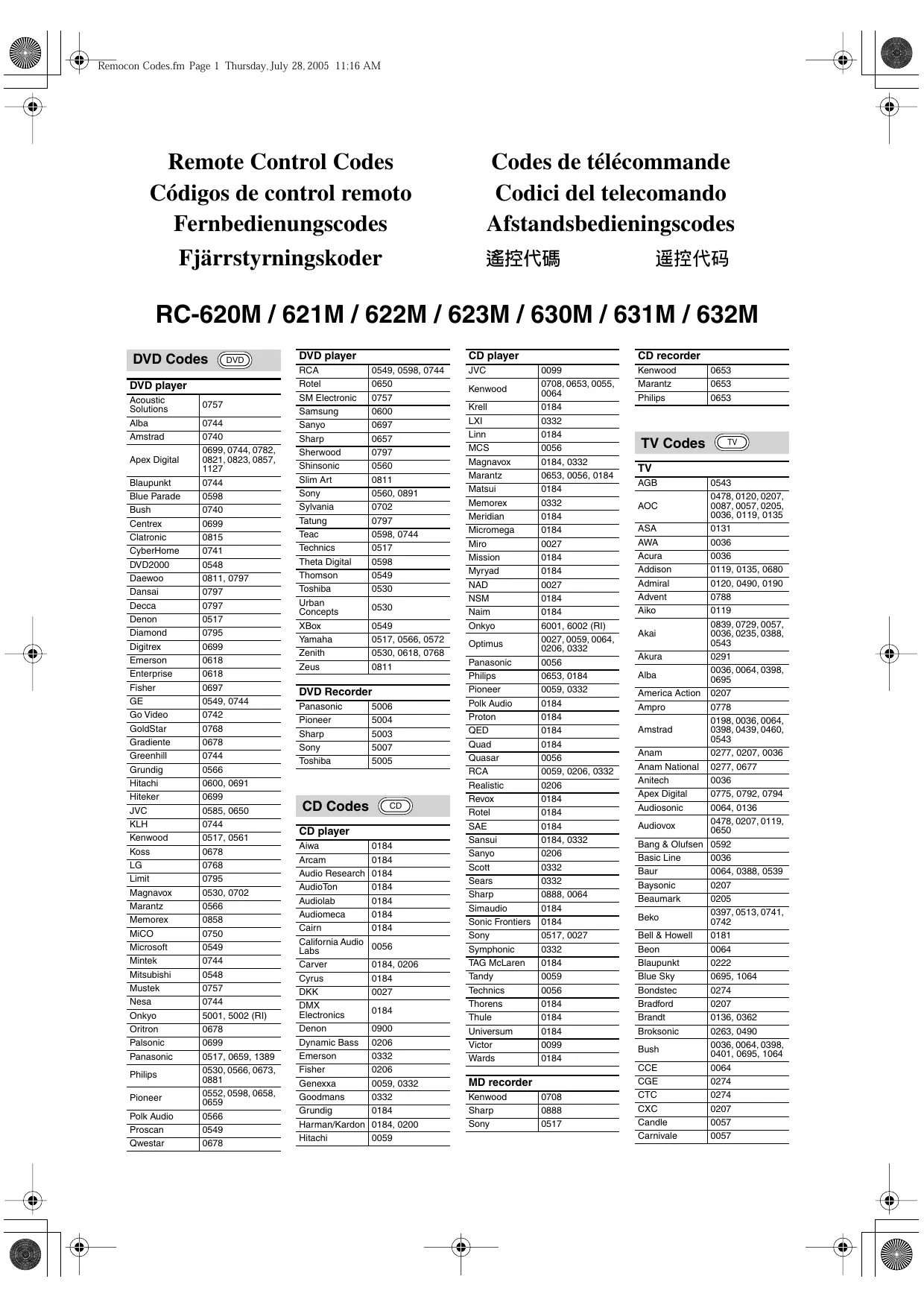 Retrouvez gratuitement la notice de l'appareil RC-632M ONKYO au format PDF.