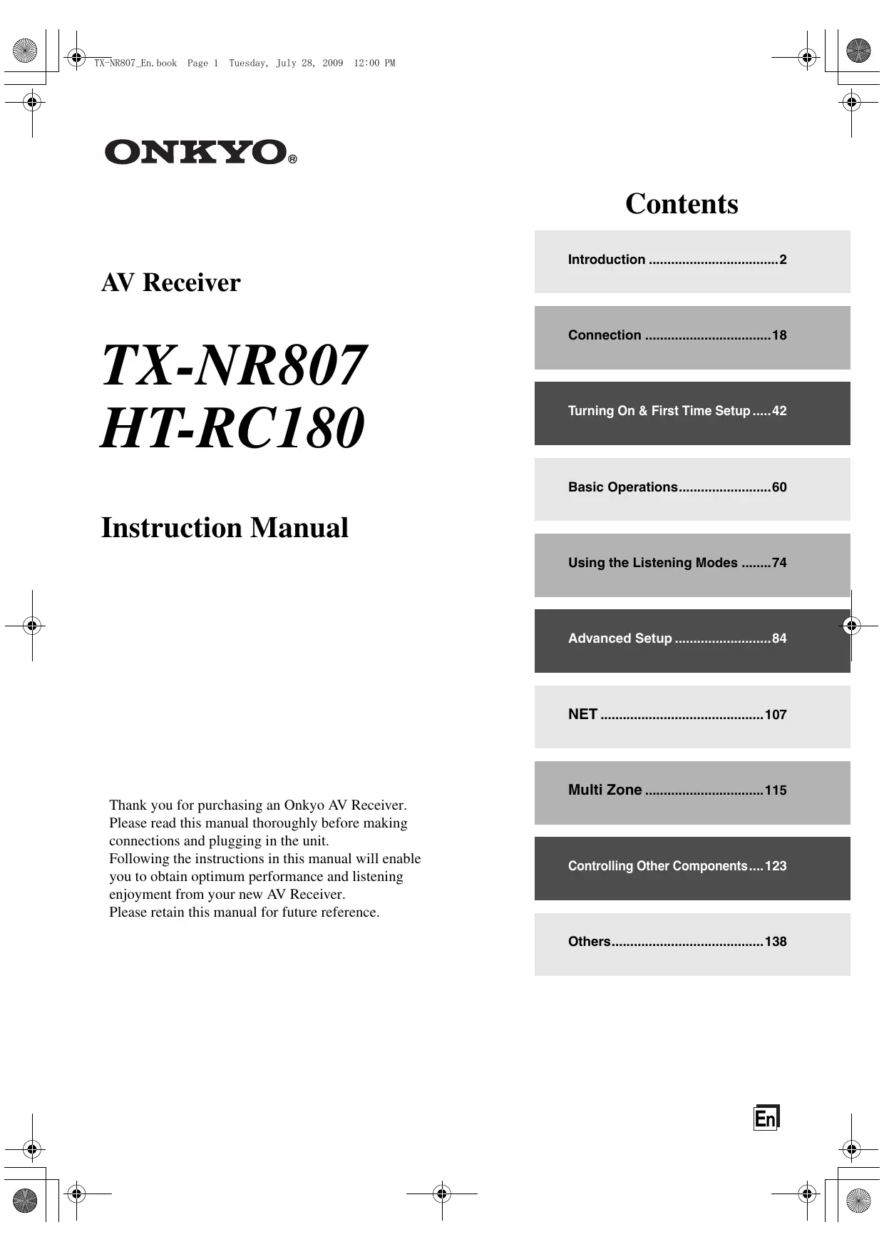 TX-NR807 - Amplificateur home cinéma ONKYO - Notice d'utilisation et mode d'emploi gratuit