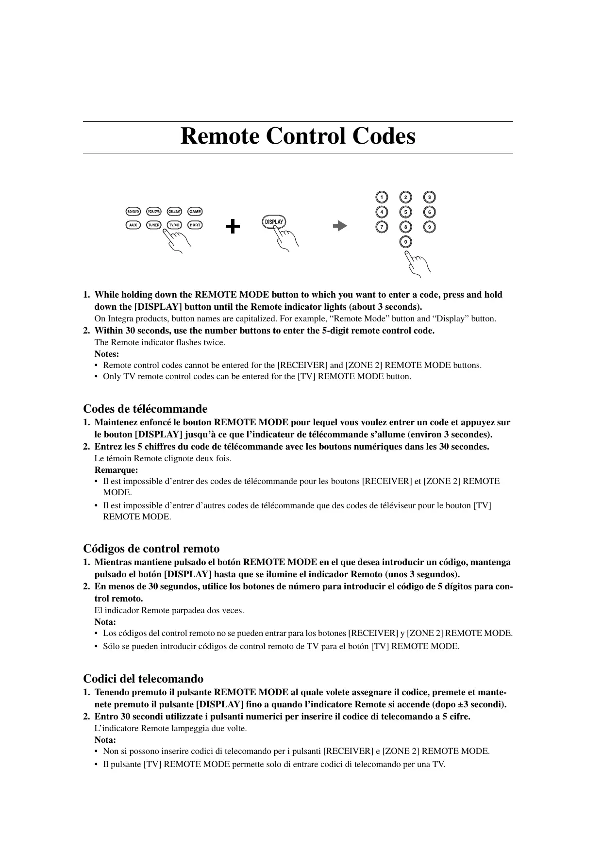 - Il est impossible d'entrée des codes de télécommande pour les boutons [RECEIVER] et [ZONE 2] REMOTE MODE.