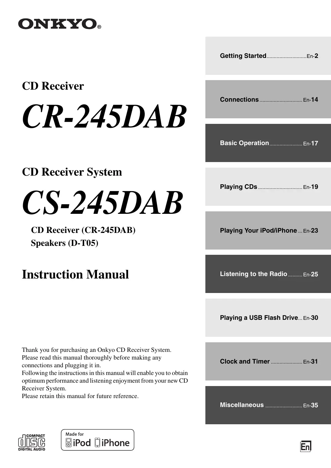 Retrouvez gratuitement la notice de l'appareil CS-245DAB ONKYO au format PDF.