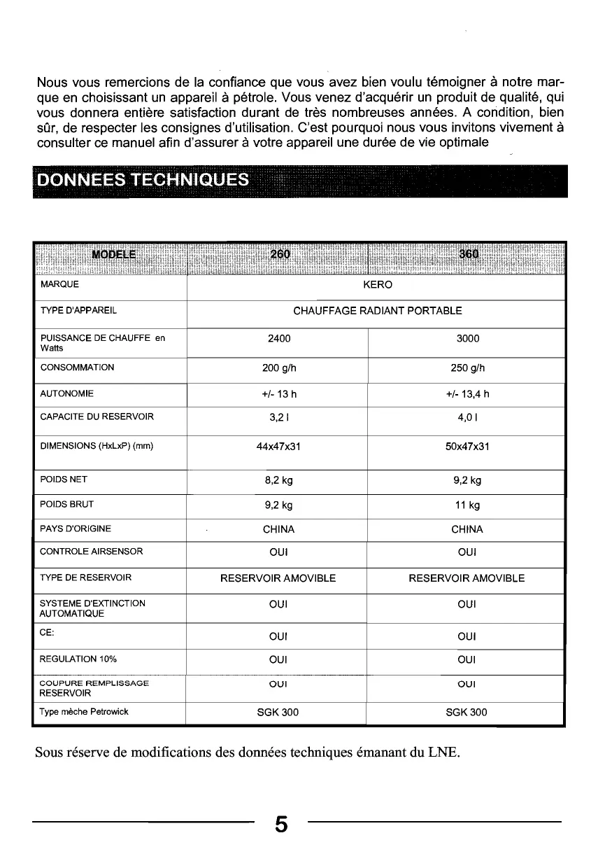 Nous vous remercions de la confiance que vous avez bien voulu témoigner à notre marque en choisissant un appareil à pétrole. Vous venez d'acquérir un produit de qualité, qui vous donnera entière satisfaction durant de très nombreuses années. A condition, bien sûr, de respecter les consignes d'utilisation. C'est pourquoi nous vous invitons vivement à consulter ce manuel afin d'assurer à votre appareil une durée de vie optimale
