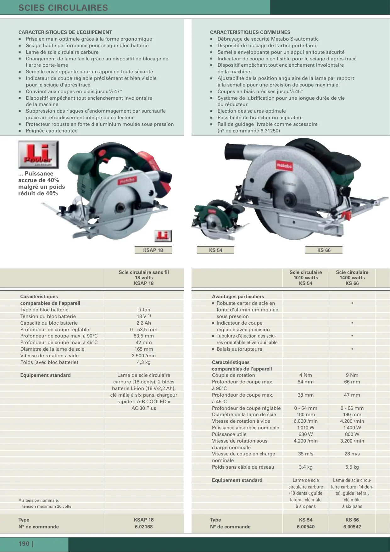 | Scie circulaire1010 wattsKS 54 | Scie circulaire1400 wattsKS 66 | |