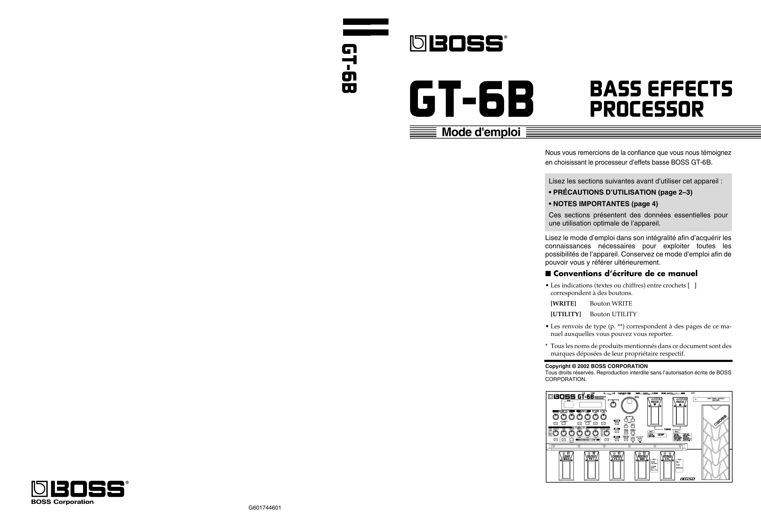Retrouvez gratuitement la notice de l'appareil GT6B BOSS au format PDF.