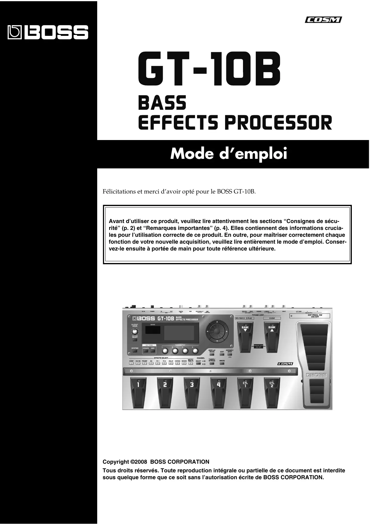 MODE D'EMPLOI GT-10B BOSS