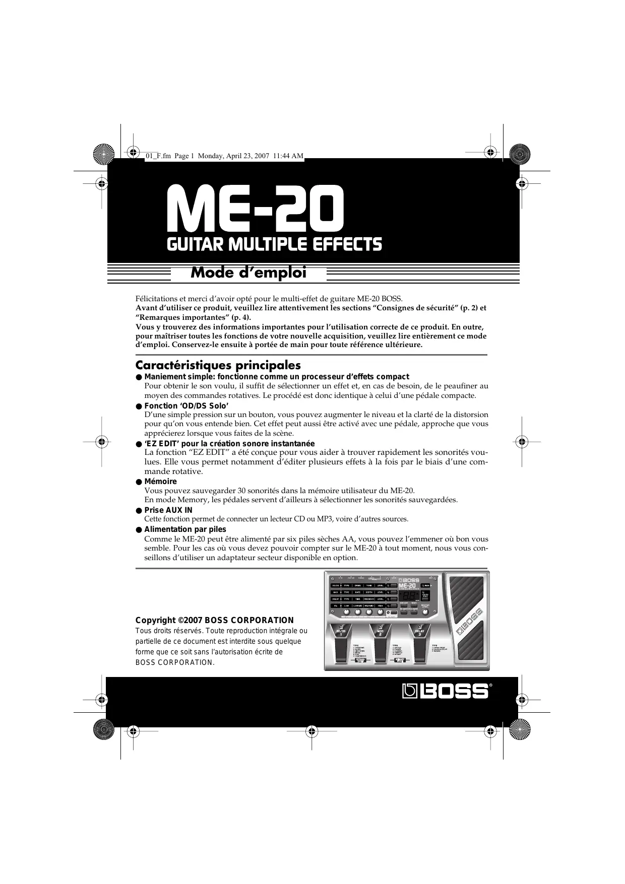MODE D'EMPLOI ME-20 BOSS