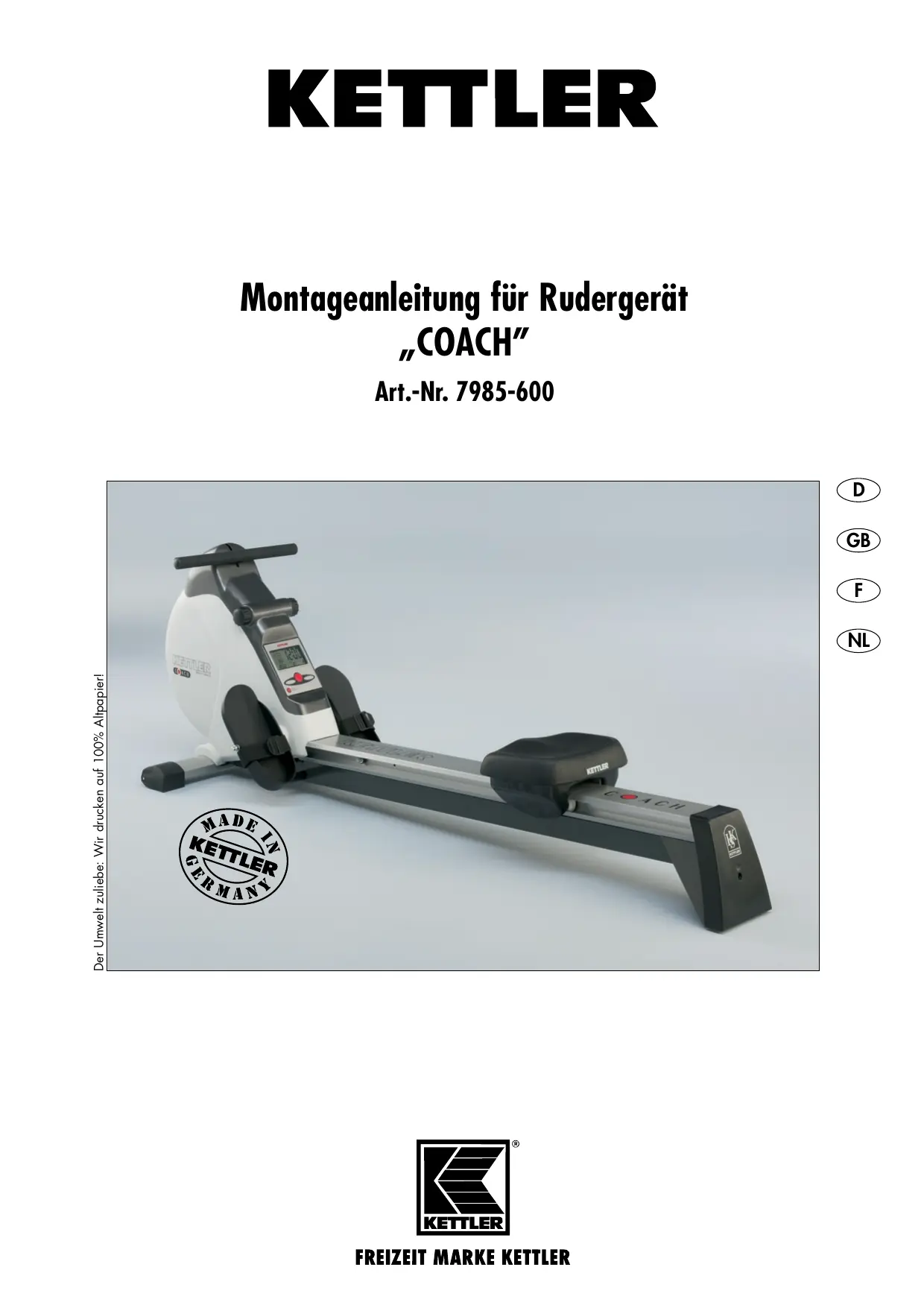 COACH - Rameur KETTLER - Notice d'utilisation et mode d'emploi gratuit