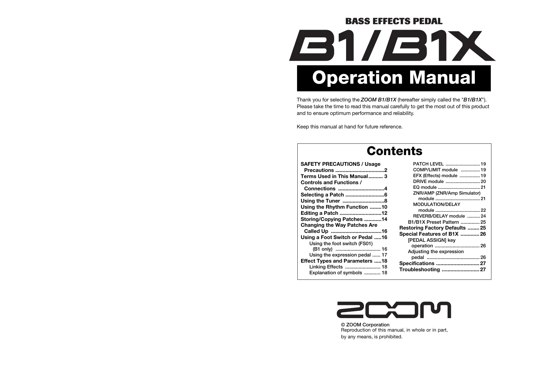 B1 - Pédalier d'effets pour guitare ZOOM - Notice d'utilisation et mode d'emploi gratuit