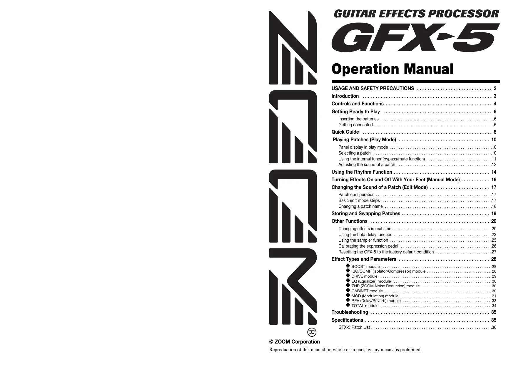 GFX-5 - Pédale d'effets pour guitare ZOOM - Notice d'utilisation et mode d'emploi gratuit