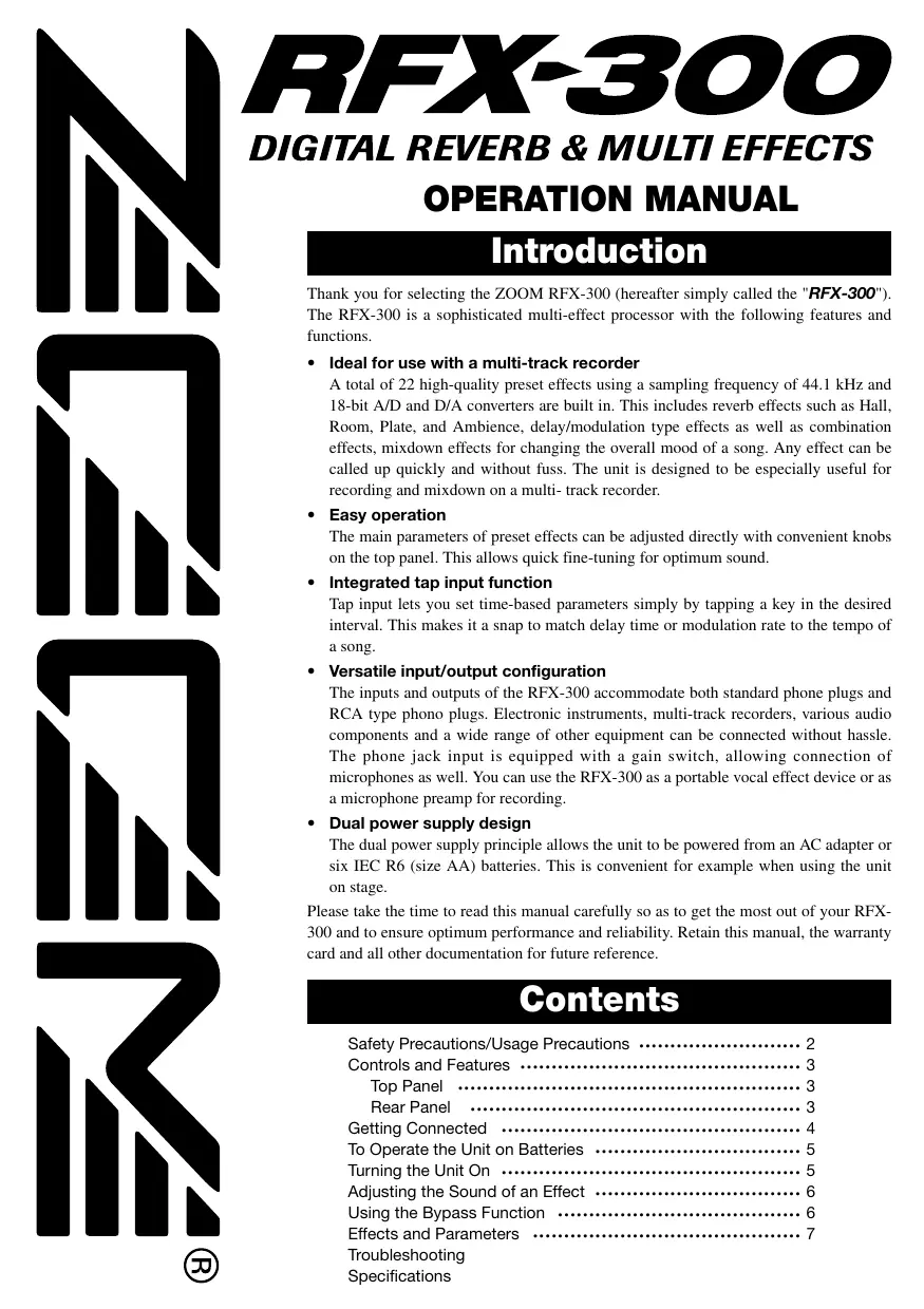 Retrouvez gratuitement la notice de l'appareil RFX-300 ZOOM au format PDF.