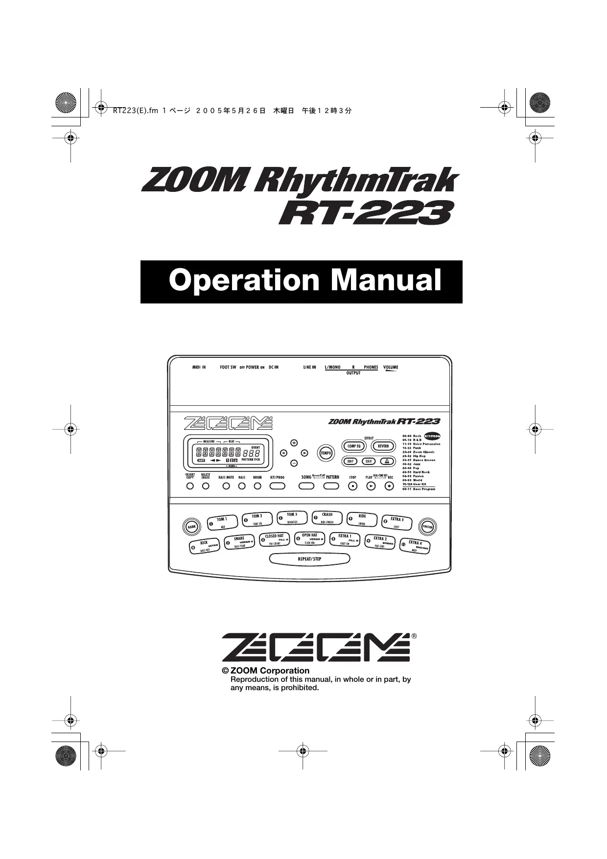 RT-223 - Instrument de musique électronique ZOOM - Notice d'utilisation et mode d'emploi gratuit