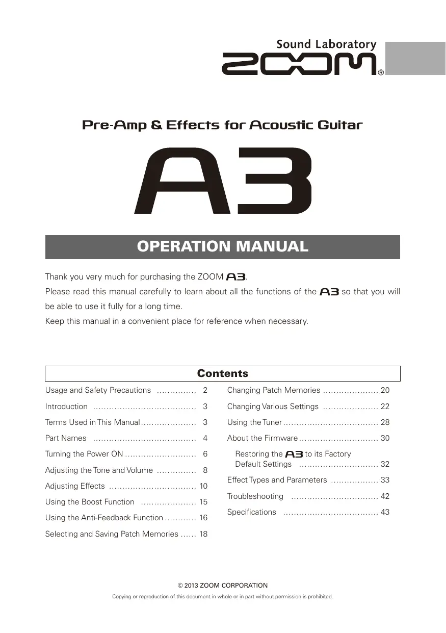 A3 - Pédalier d'effets pour guitare ZOOM - Notice d'utilisation et mode d'emploi gratuit