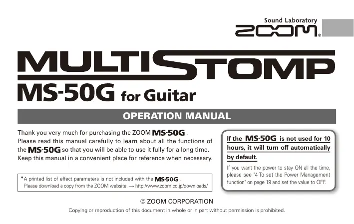 MS-50G - Pédale d'effet pour guitare ZOOM - Notice d'utilisation et mode d'emploi gratuit