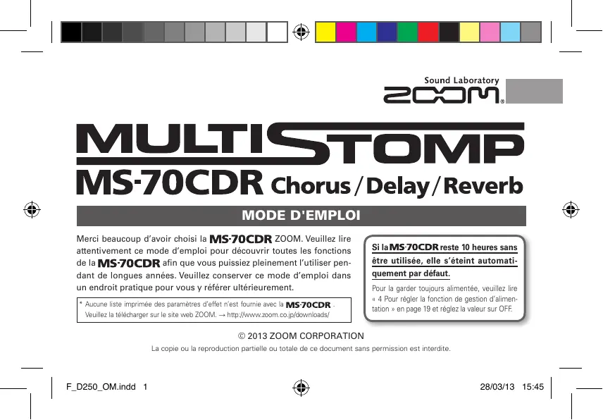 MS-70CDR - Pédale d'effet pour guitare ZOOM - Notice d'utilisation et mode d'emploi gratuit