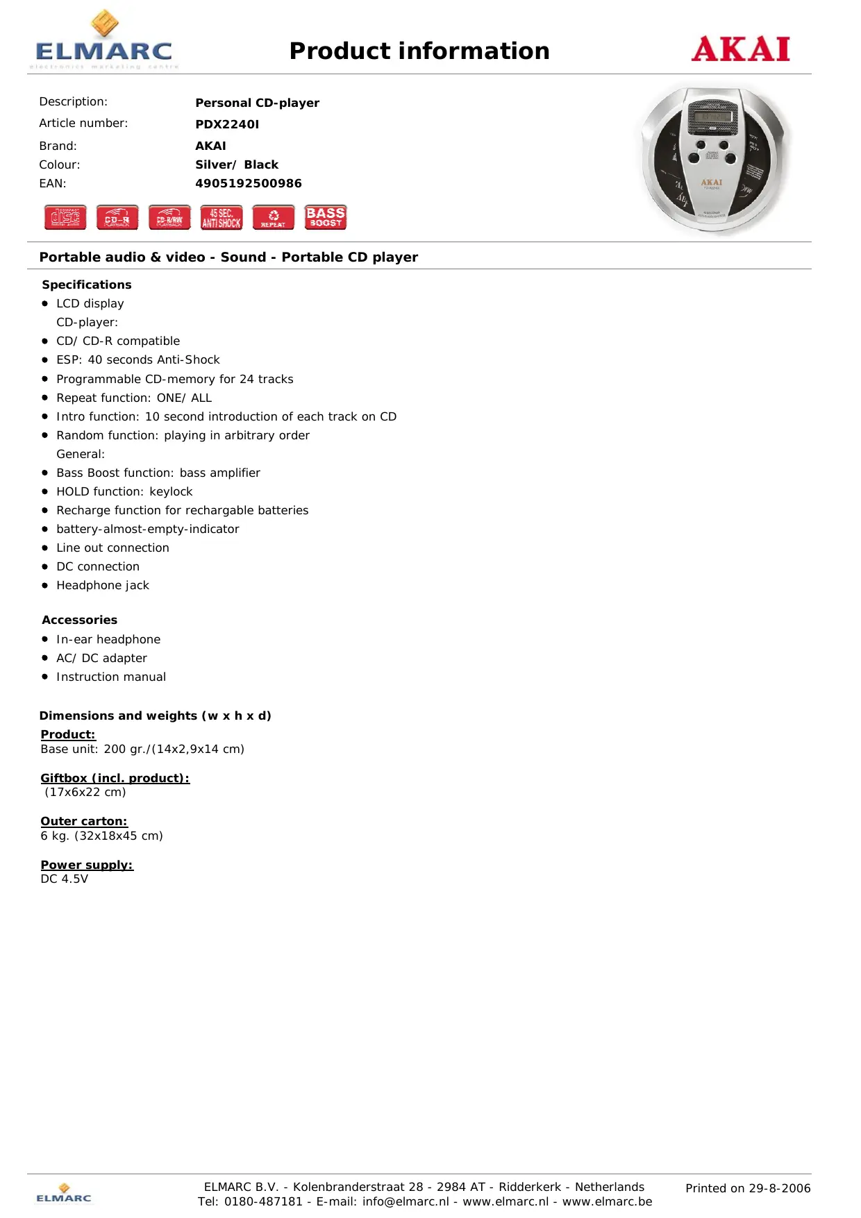 Retrouvez gratuitement la notice de l'appareil PDX2240I AKAI au format PDF.