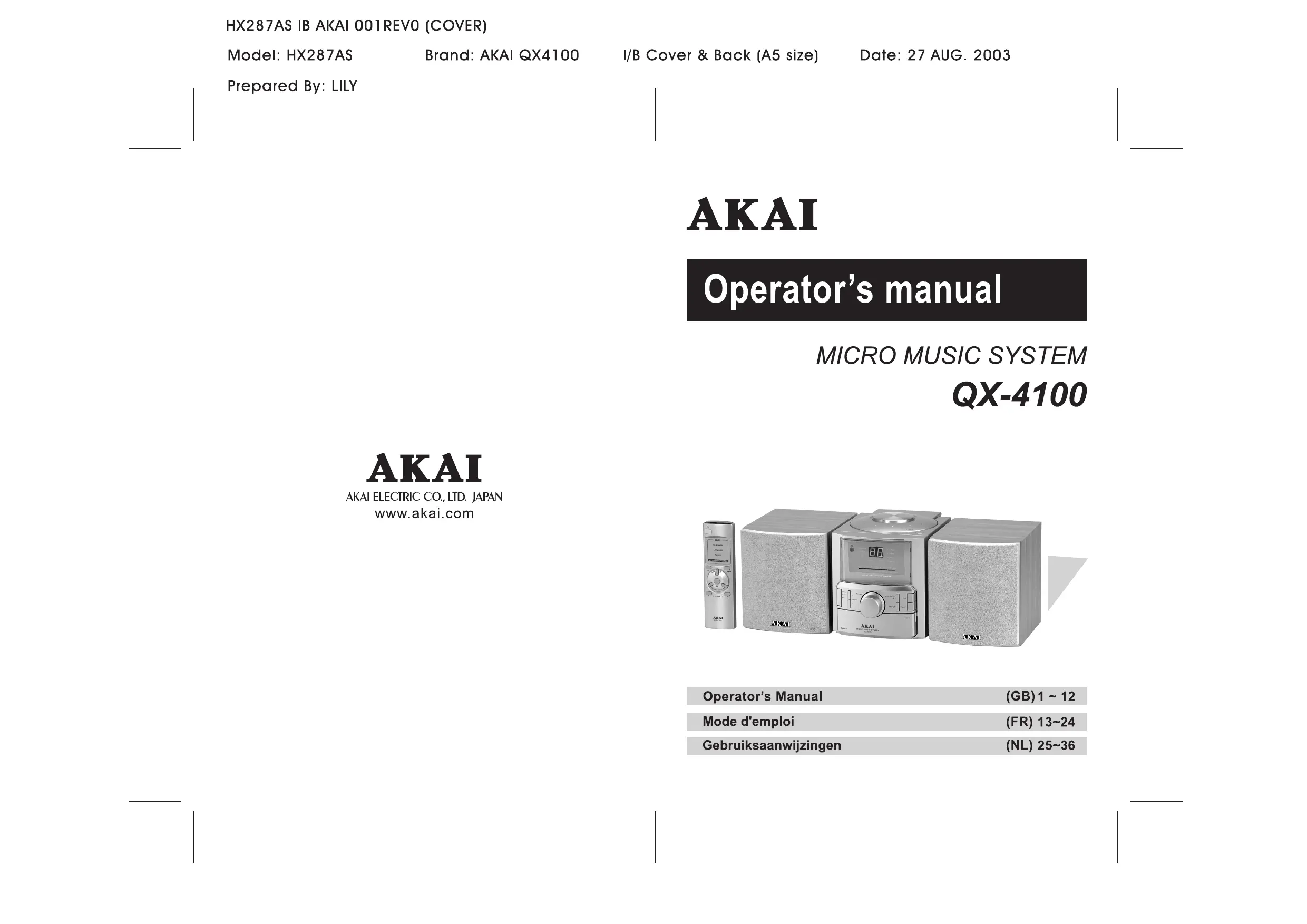 Retrouvez gratuitement la notice de l'appareil QX4100 AKAI au format PDF.