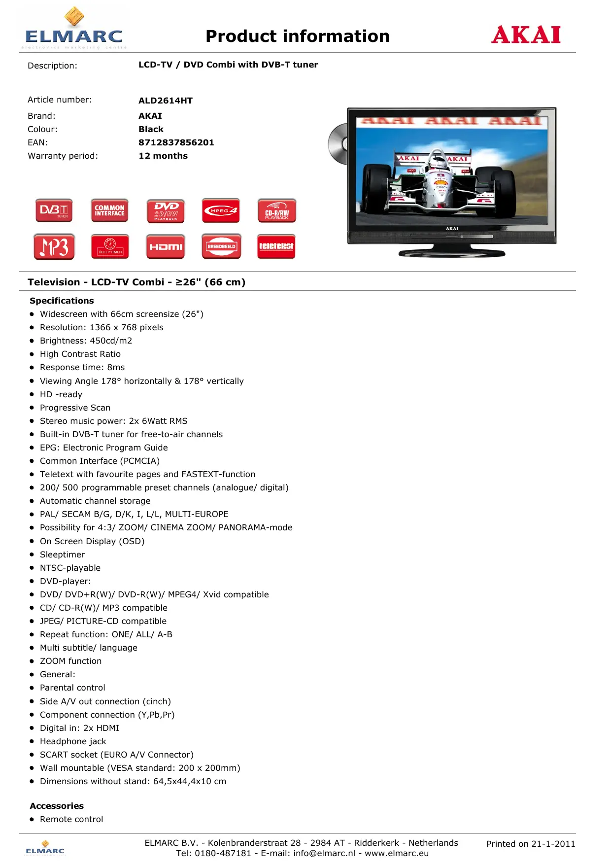 Téléchargez la notice de votre au format PDF gratuitement ! Retrouvez votre notice ALD2614HT - AKAI et reprennez votre appareil électronique en main. Sur cette page sont publiés tous les documents nécessaires à l'utilisation de votre appareil ALD2614HT de la marque AKAI.