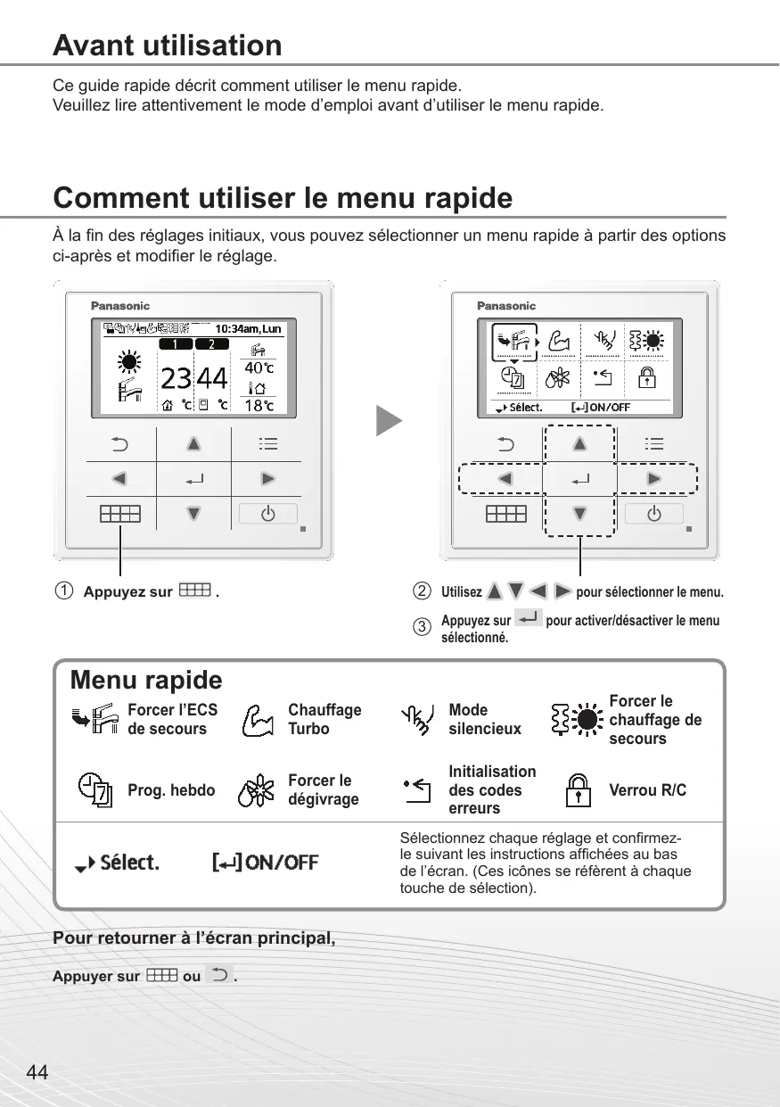 Ce guide rapide décrit comment utiliser le menu rapide. Veuillez lire attentivement le mode d’emploi avant d’utiliser le menu rapide.
