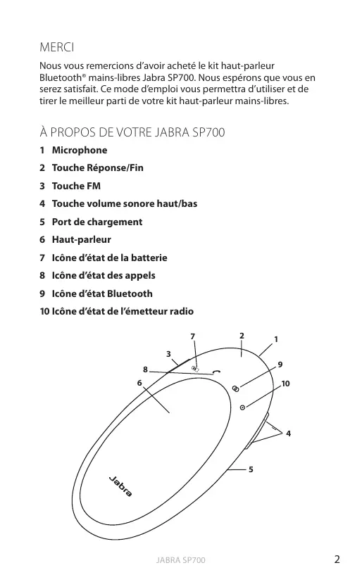 Retrouvez gratuitement la notice de l'appareil SP700 JABRA au format PDF.