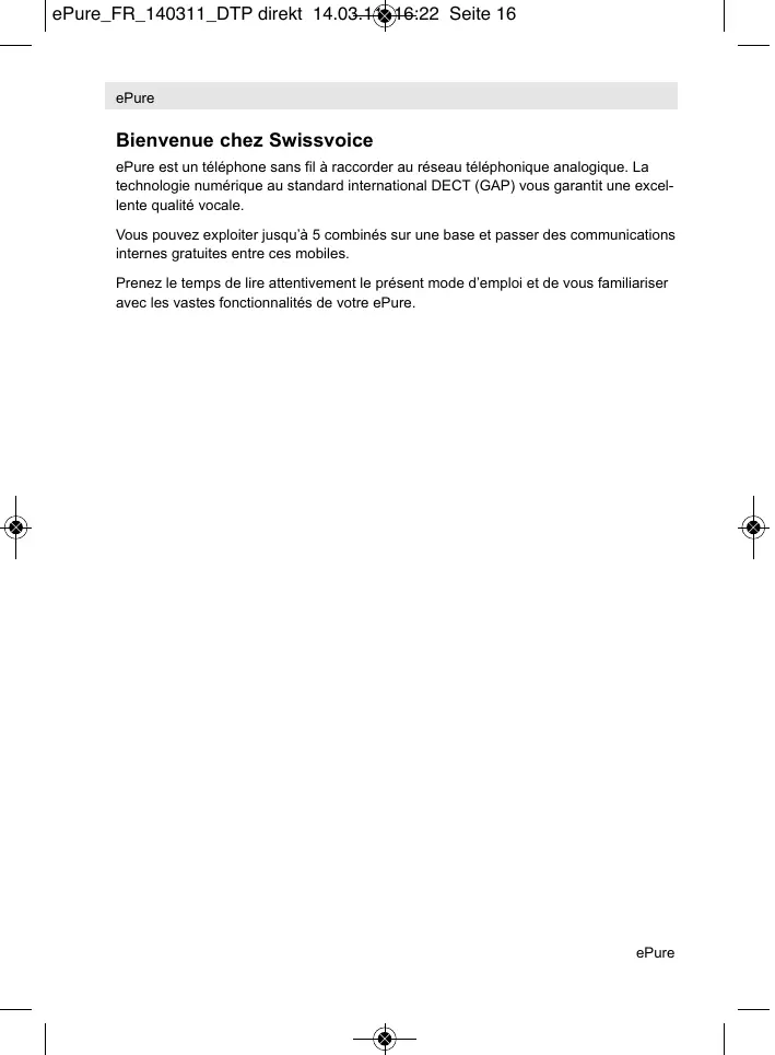 Retrouvez gratuitement la notice de l'appareil EPURE SWISSVOICE au format PDF.
