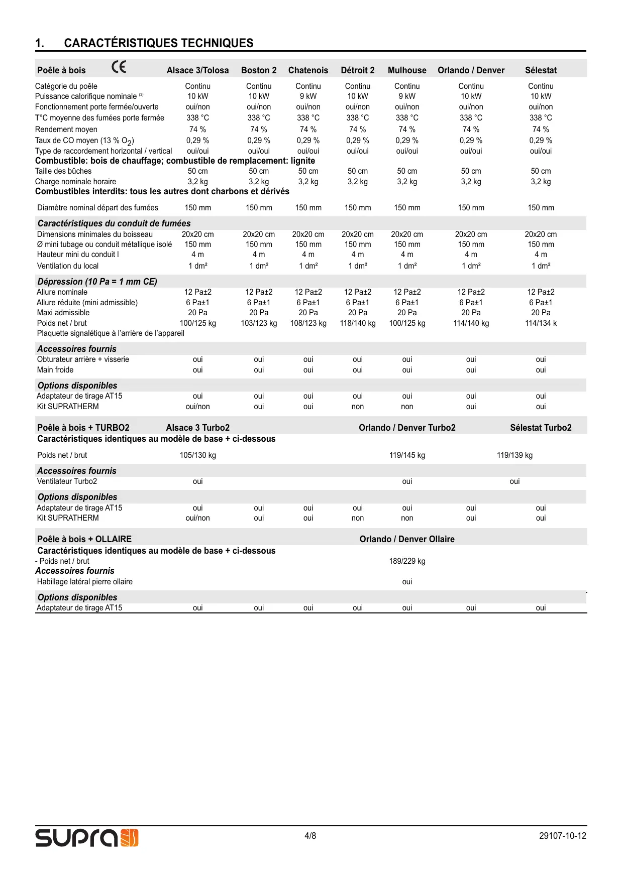 3.1.1. Bois Celui-ci doit être réchauffé progressivement avant d'obtenir le tirage normal.