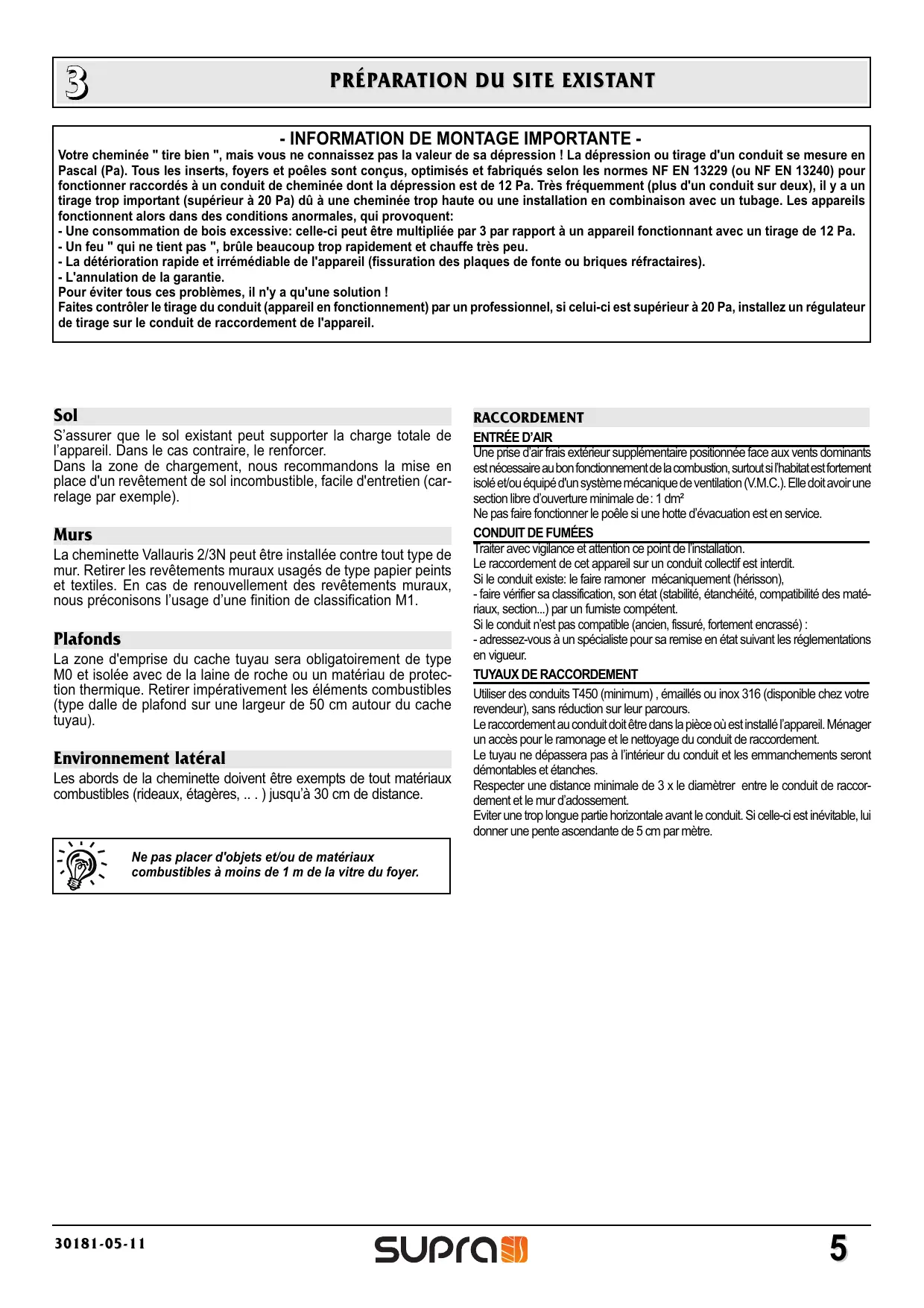 Téléchargez la notice de votre Cheminée insert au format PDF gratuitement ! Retrouvez votre notice VALLAURIS 2.3 N - SUPRA et reprennez votre appareil électronique en main. Sur cette page sont publiés tous les documents nécessaires à l'utilisation de votre appareil VALLAURIS 2.3 N de la marque SUPRA.