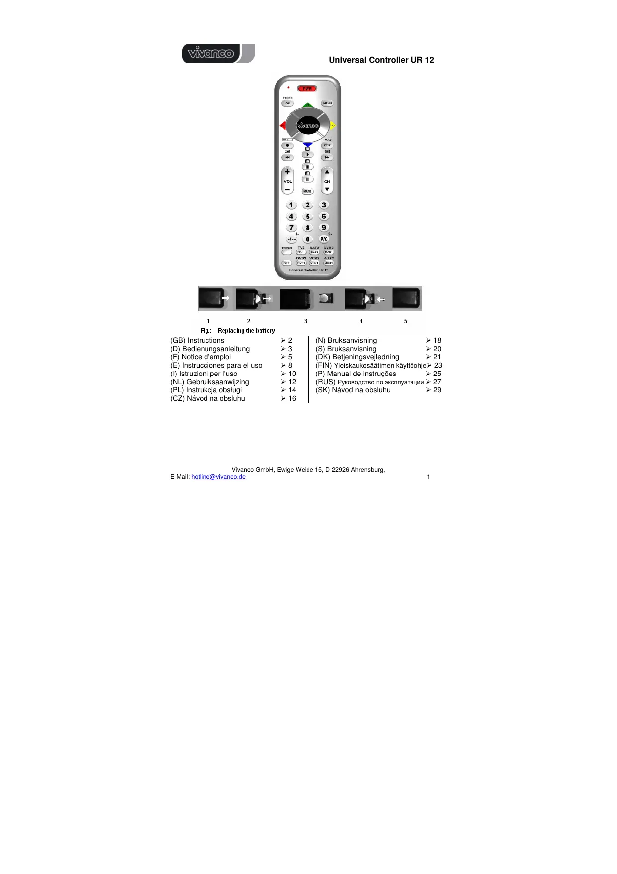 Retrouvez gratuitement la notice de l'appareil UR 12 VIVANCO au format PDF.