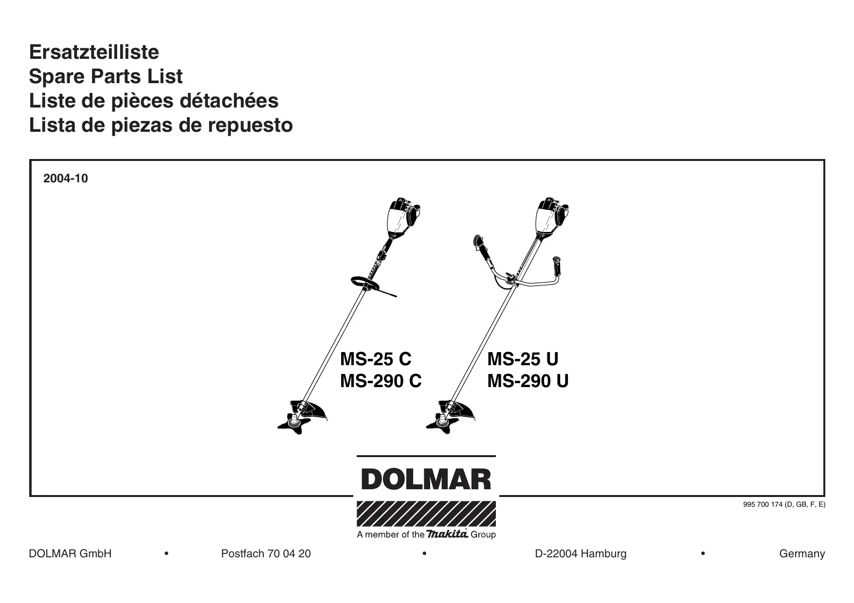 MS-290 C - Outil de jardinage DOLMAR - Notice d'utilisation et mode d'emploi gratuit