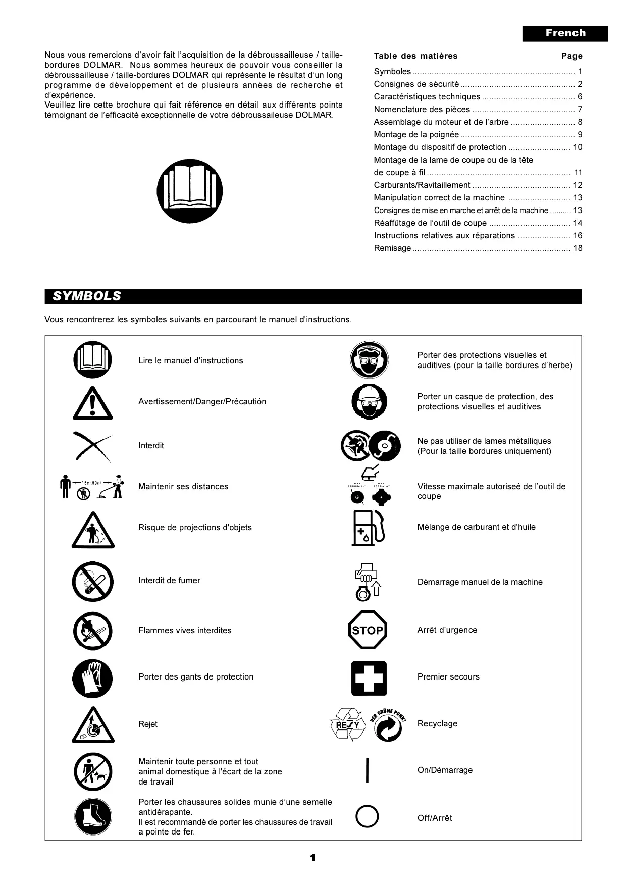| Compatibilités | Accessoires compatibles : lames, fils de coupe DOLMAR |