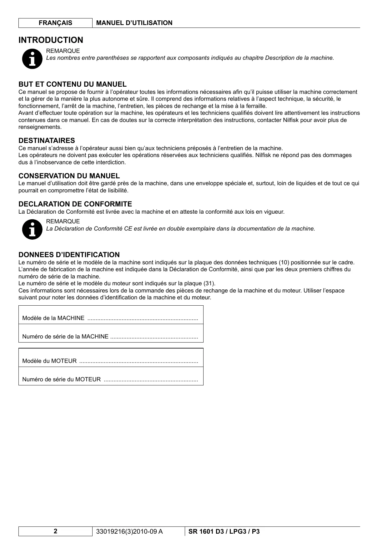Retrouvez gratuitement la notice de l'appareil SR 1601 D3 NILFISK au format PDF.