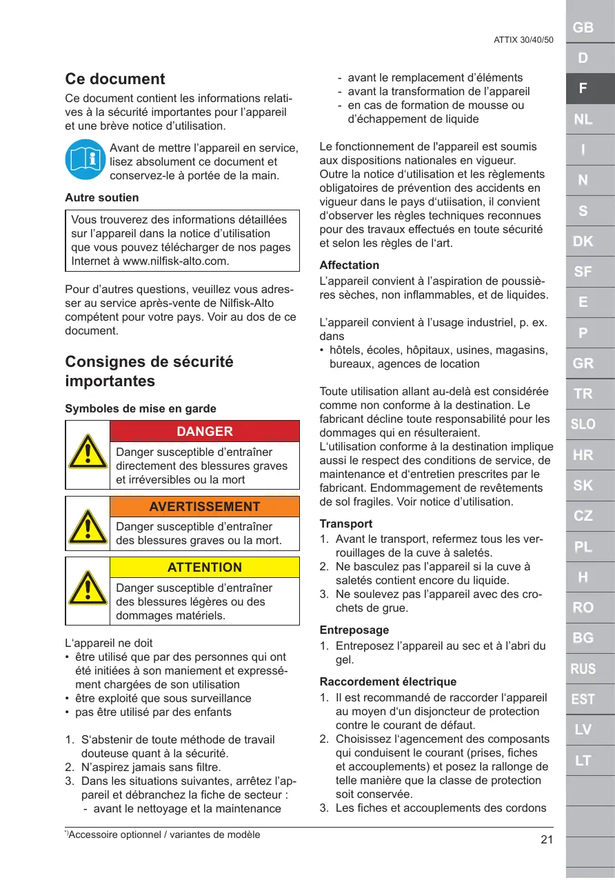 Retrouvez gratuitement la notice de l'appareil ATTIX 30 BATT NILFISK au format PDF.