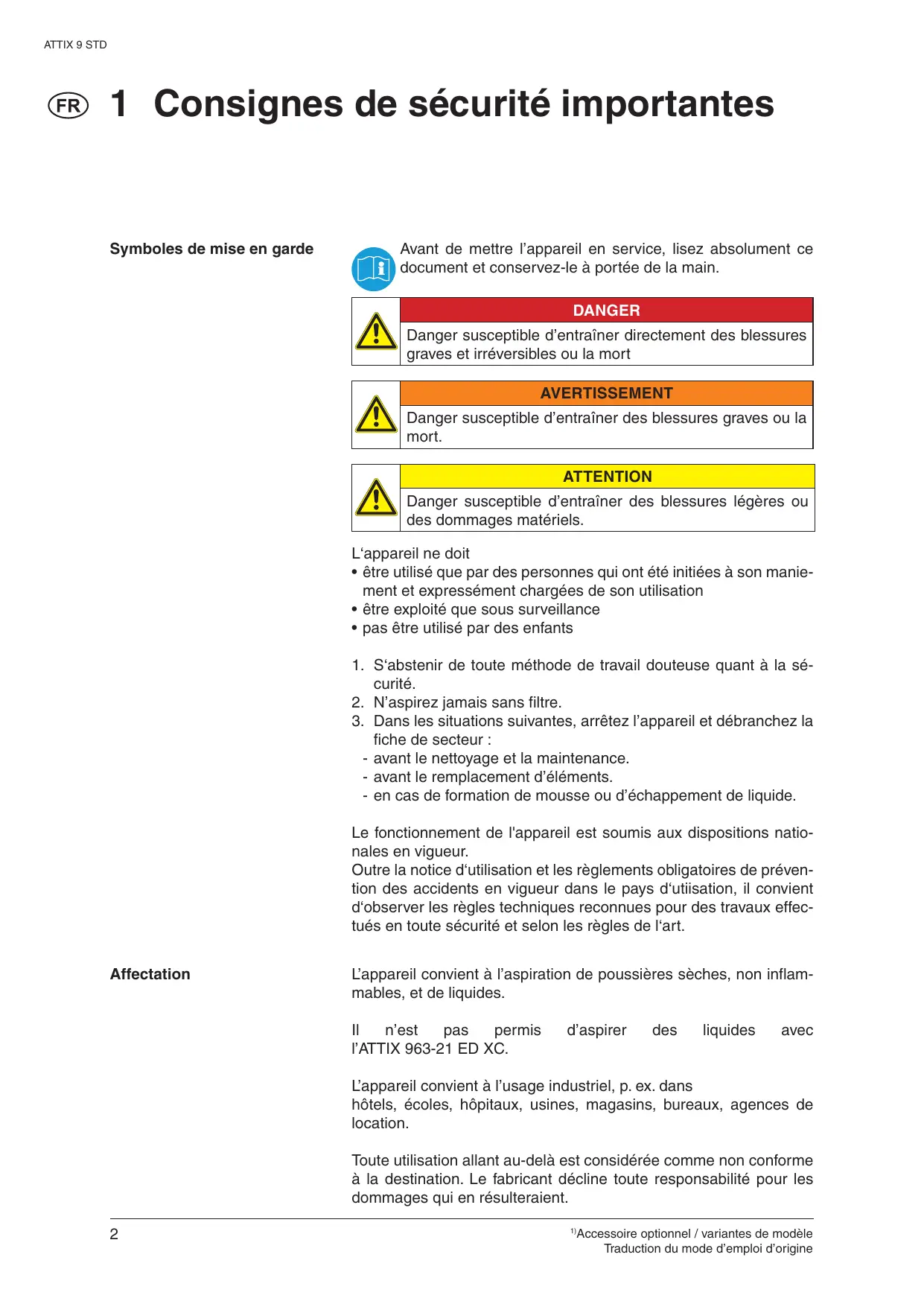 MODE D'EMPLOI ATTIX 963 ED XC NILFISK
