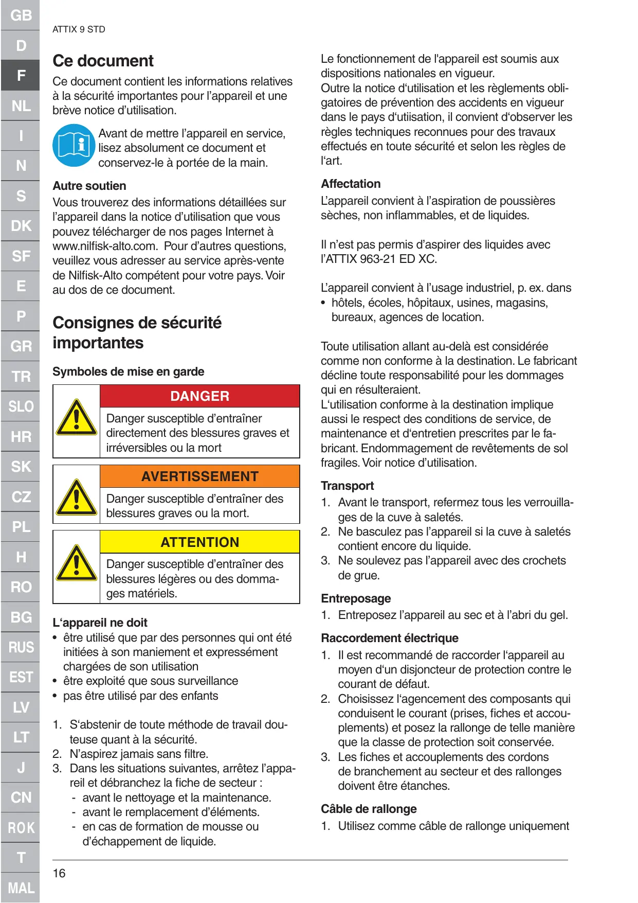 MODE D'EMPLOI ATTIX 963-21 ED XC NILFISK