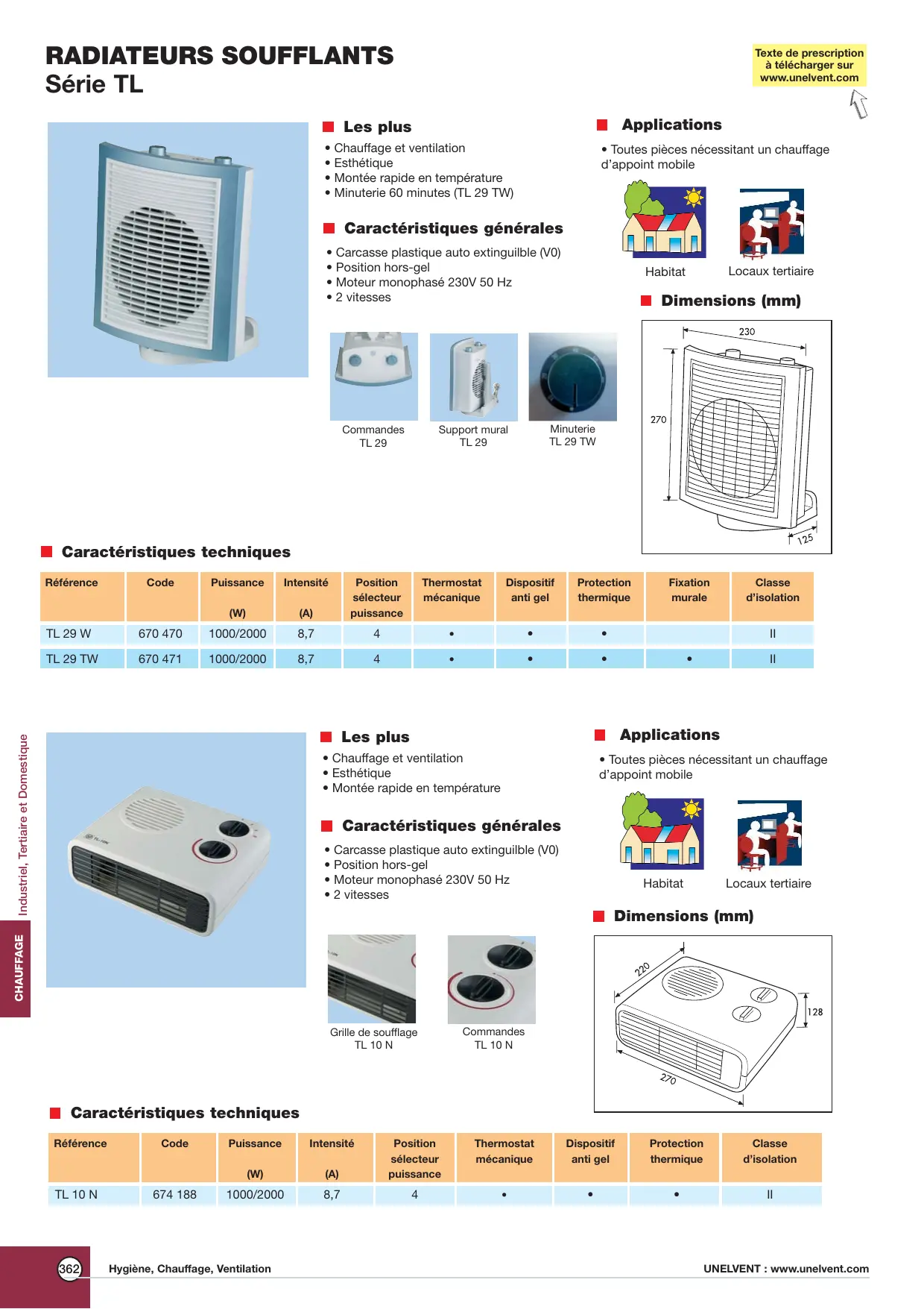 RADIATEUR SOUFFLANT TL - Radiateur soufflant UNELVENT - Notice d'utilisation et mode d'emploi gratuit