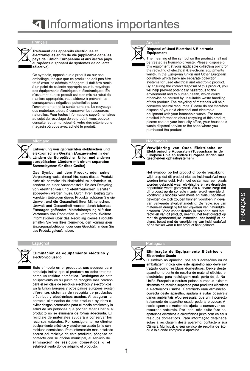 | Instructions pour les utilisateurs | Ne pas jeter dans les ordures ménagères |