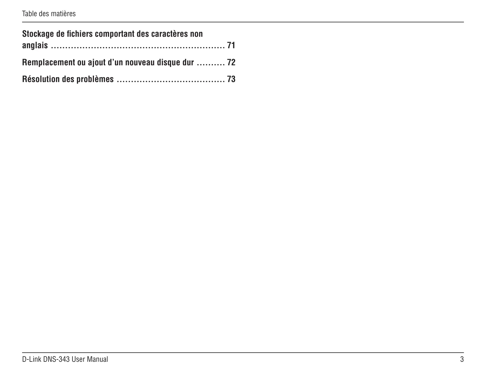 - Résolution des problèmes D-Link DNS-343 User Manual p. 73
