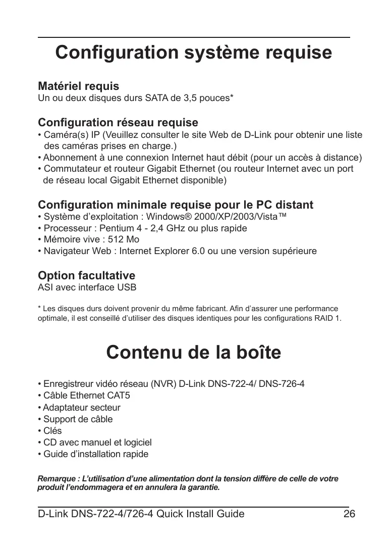 Configuration système requise Matériel requis Un ou deux disques durs SATA de 3,5 pouces* Configuration réseau requise