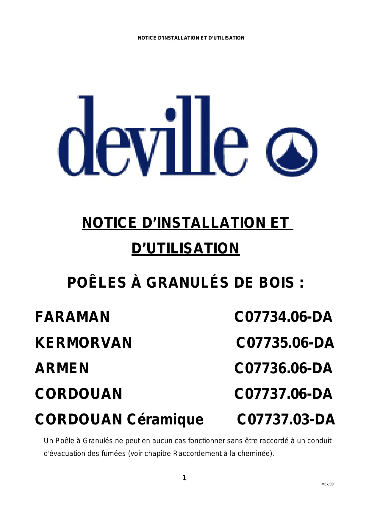 ARMEN - Poêle à granulés DEVILLE - Notice d'utilisation et mode d'emploi gratuit