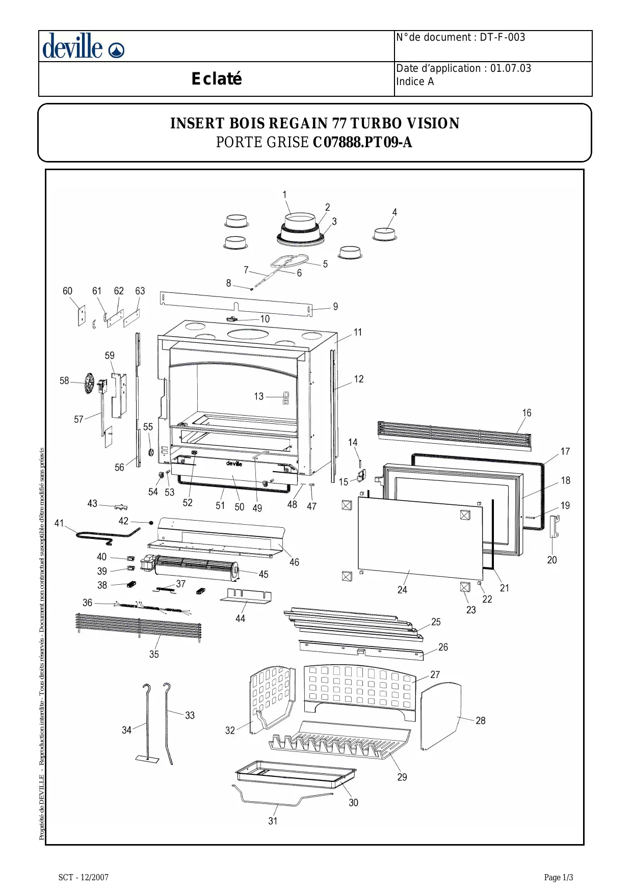 N° de document : DT-F-003 Eclaté Date d’application : 01.07.03 Indice A Propriété de DEVILLE - Reproduction interdite - Tous droits réservés - Document non contractuel susceptible d'être modifié sans préavis