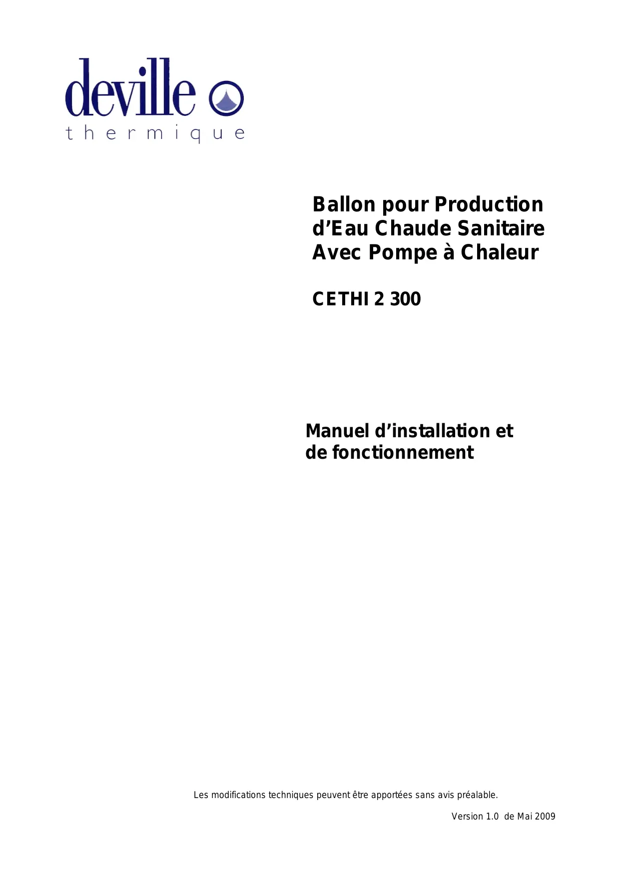 CETHI 2 300 - Chauffe-eau DEVILLE - Notice d'utilisation et mode d'emploi gratuit