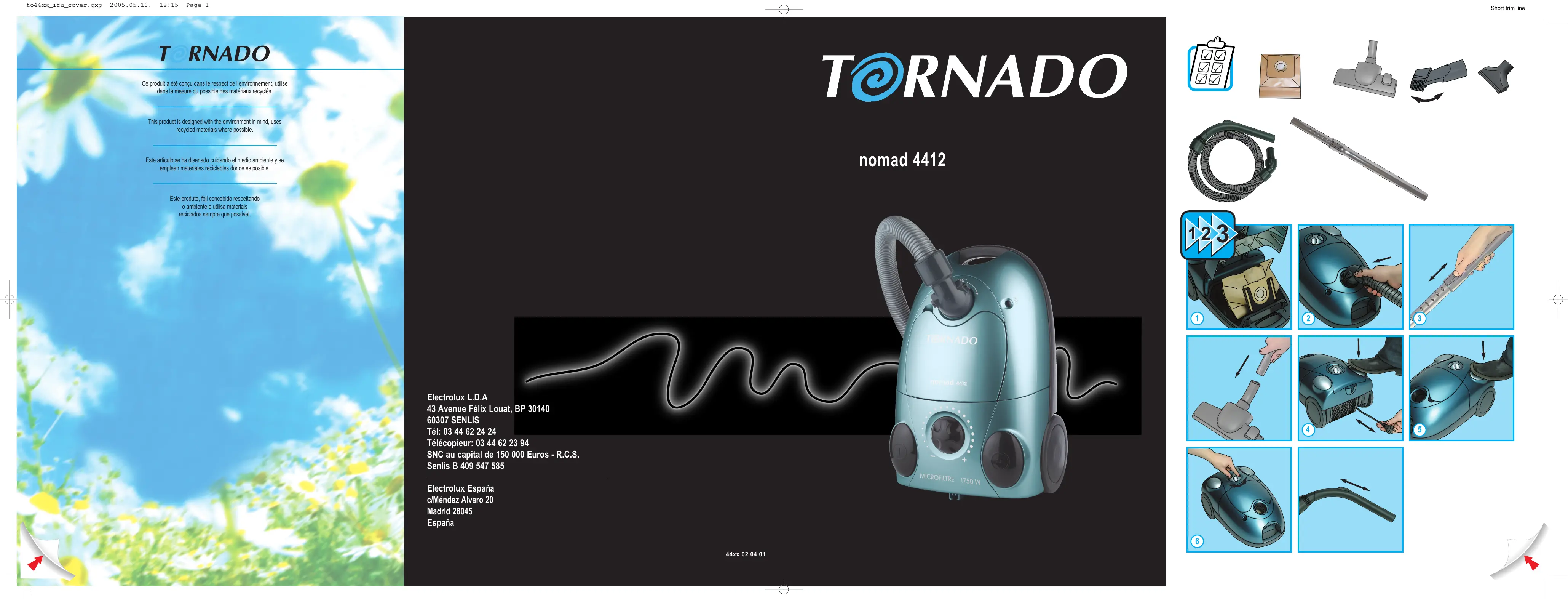 Ce produit a été conçu dans le respect de l’environnement, utilise dans la mesure du possible des matériaux recyclés. Nous vous remercions d’avoir choisi un aspirateur Tornado. Pour garantir une satisfaction totale, lire attentivement ce mode d’emploi. A conserver pour s’y référer.