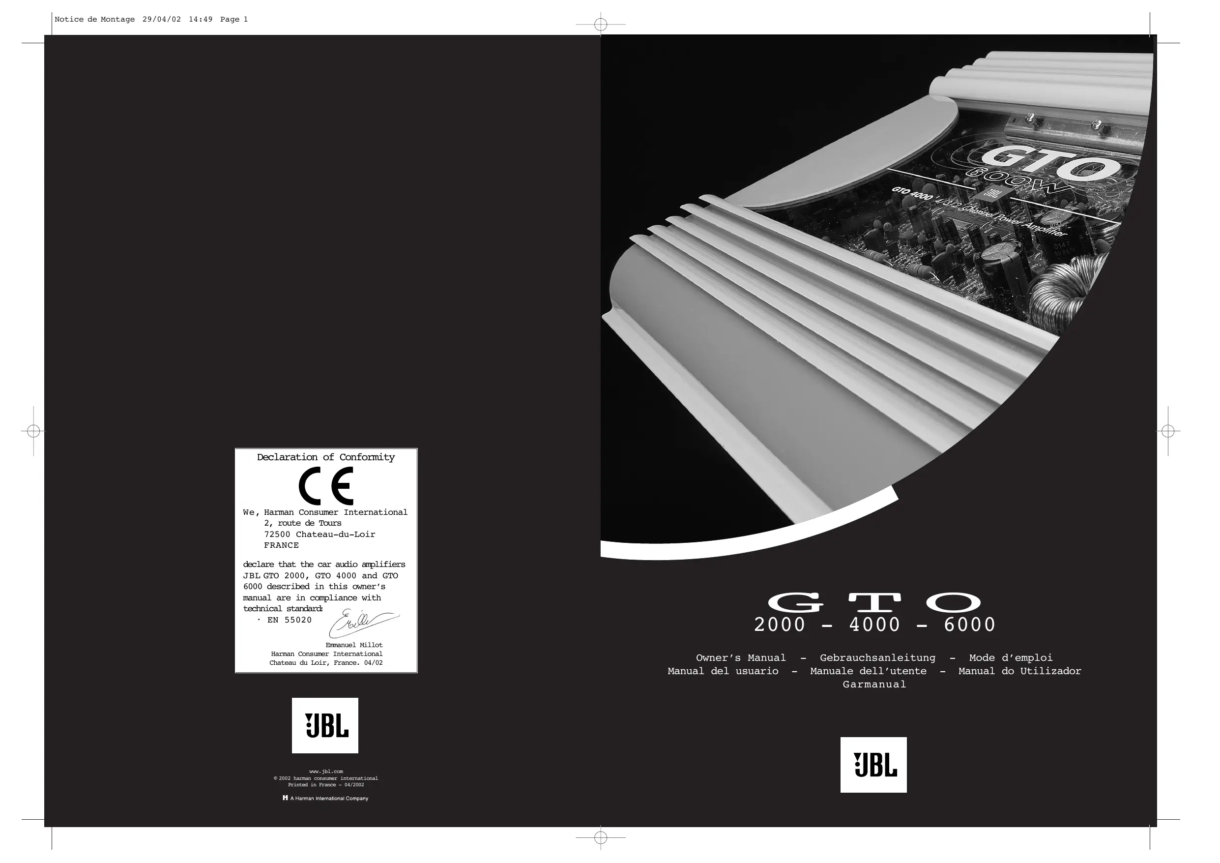 Retrouvez gratuitement la notice de l'appareil GTO 6000 JBL au format PDF.