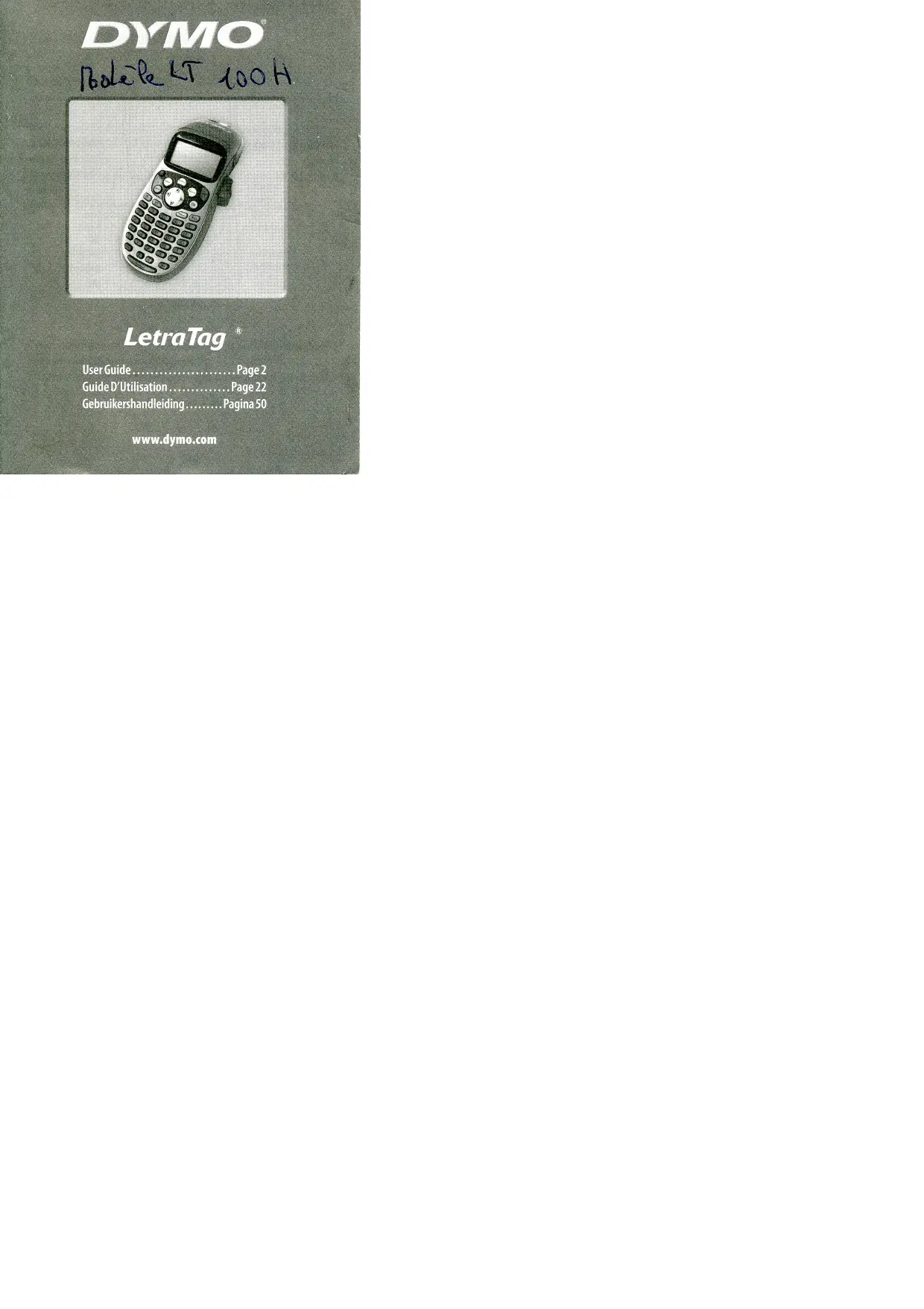 Retrouvez gratuitement la notice de l'appareil LETRATAG LT 100H DYMO au format PDF.