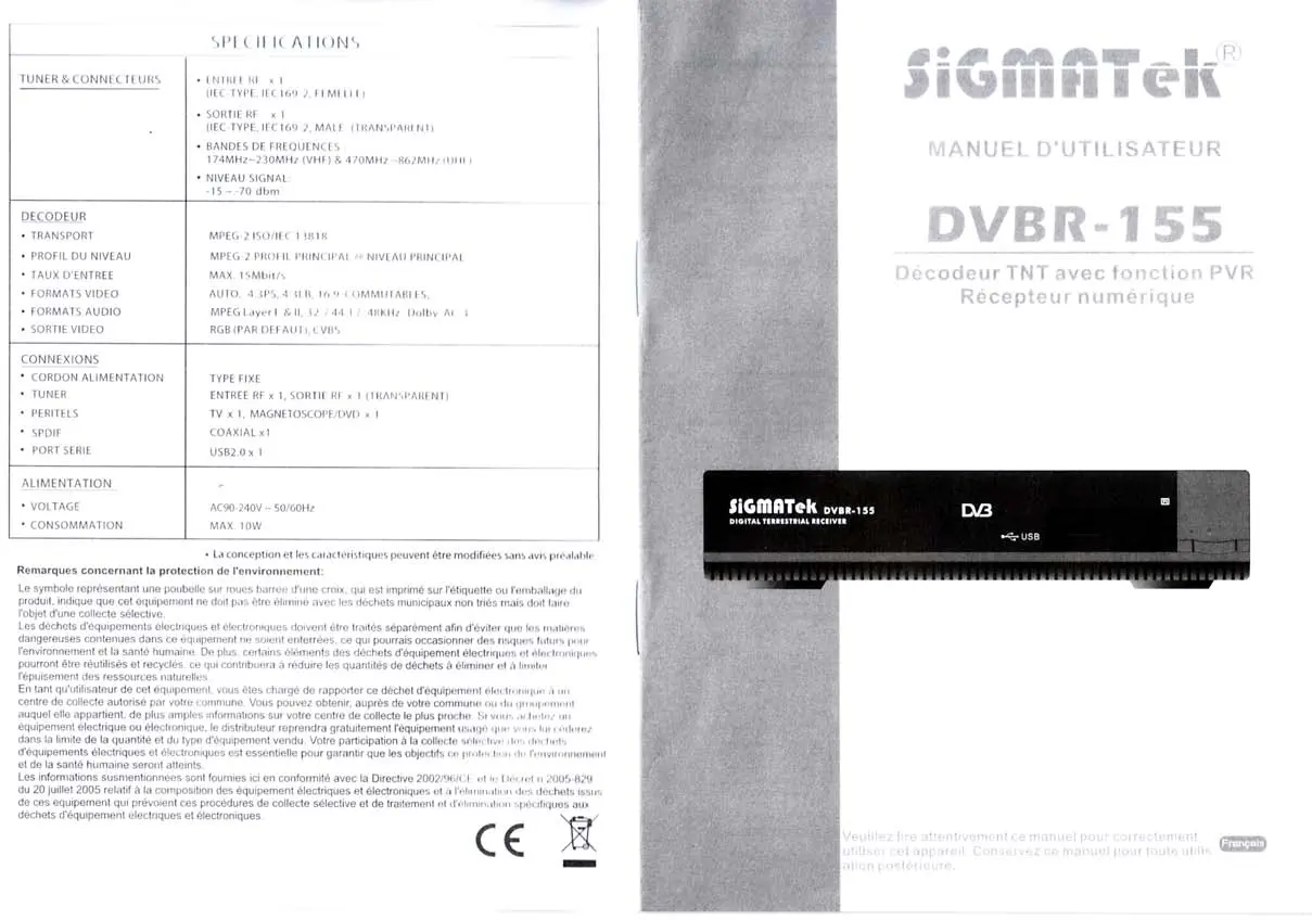 DVBR-155 - Décodeur TV numérique SIGMATEK - Notice d'utilisation et mode d'emploi gratuit