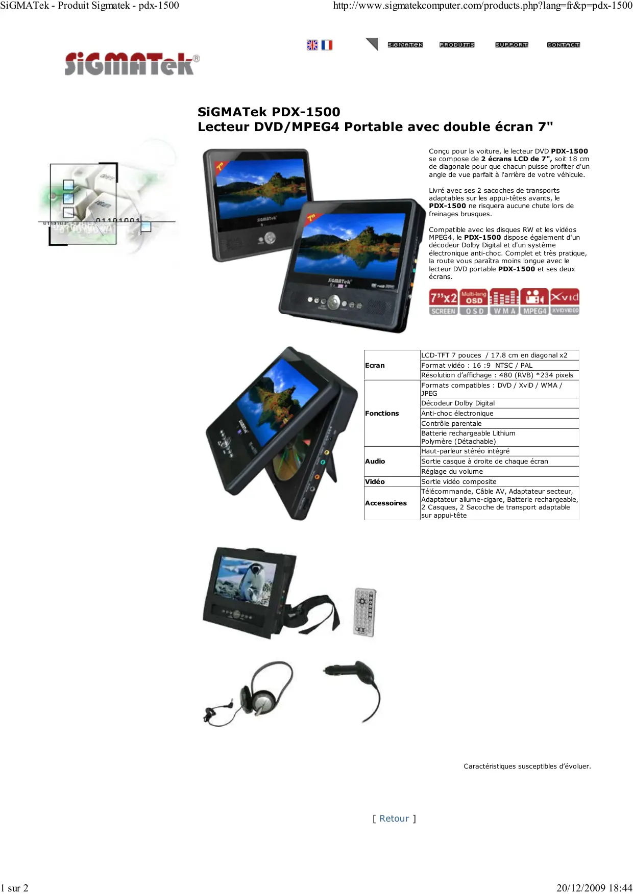 PDX-1500 - Lecteur DVD portable SIGMATEK - Notice d'utilisation et mode d'emploi gratuit