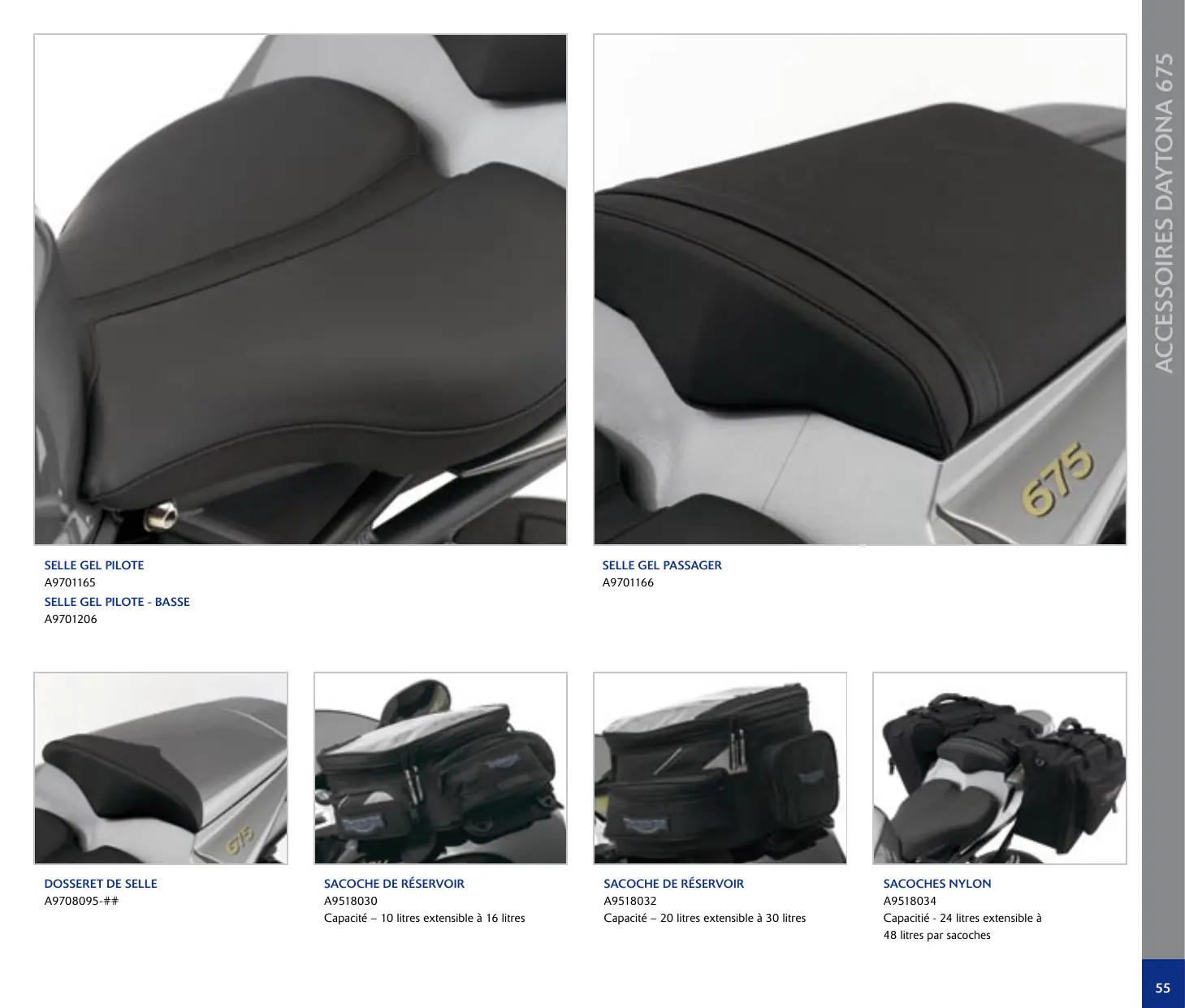 A9720101 ACCESSOIRES dAytOnA 675 PLAtInES REPOSE PIEdS ARROw A9750539 A utiliser uniquement sur circuit ROULEttES POUR BÉQUILLE dE StAnd - GRIS A9648002 QUICKSHIFt A9930222 – A utiliser avec les platines d’origine A9930224 – A utiliser avec les platines Arrow A utiliser uniquement sur circuit ROULEttES POUR BÉQUILLE dE StAnd - nOIR A9648003 KIt dE FInItIOn PLAtInE REPOSE PIEd AR A9708094