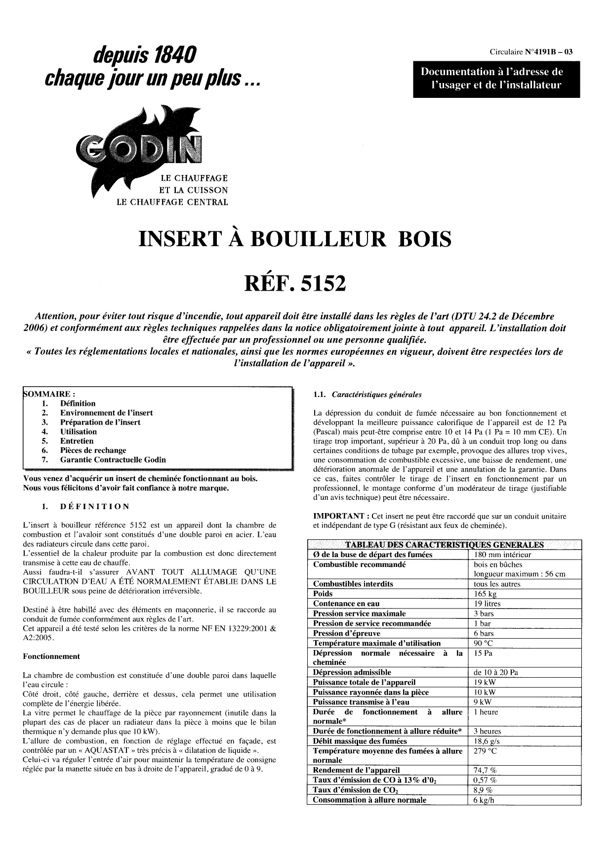 Retrouvez gratuitement la notice de l'appareil 5152 INSERT A BOUILLEUR BOIS GODIN au format PDF.