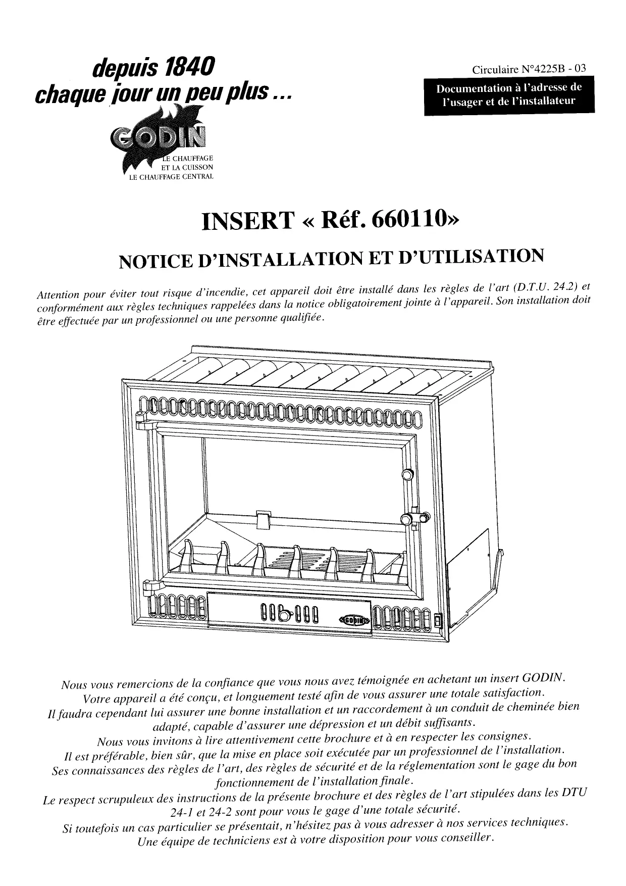 660110 INSERT - Insert de cheminée GODIN - Notice d'utilisation et mode d'emploi gratuit
