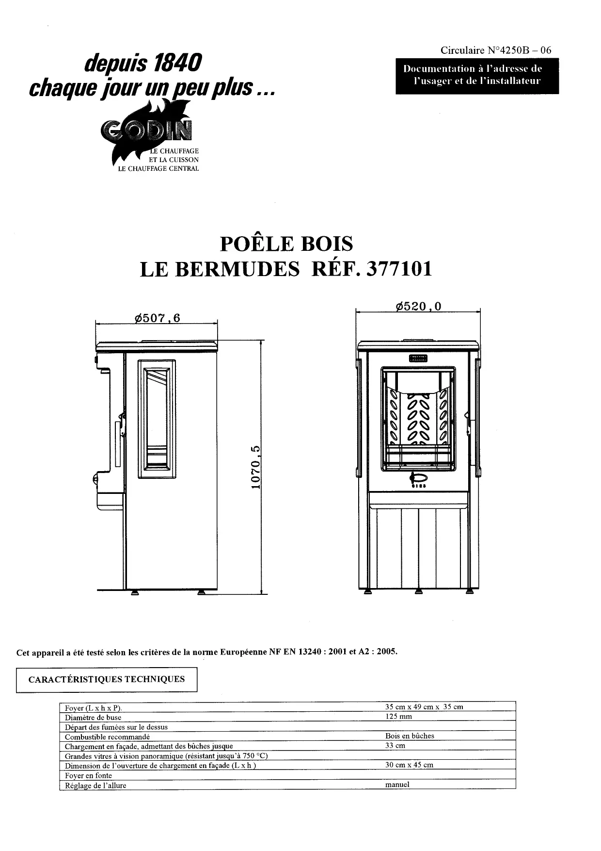 BERMUDES - Poêle à bois GODIN - Notice d'utilisation et mode d'emploi gratuit