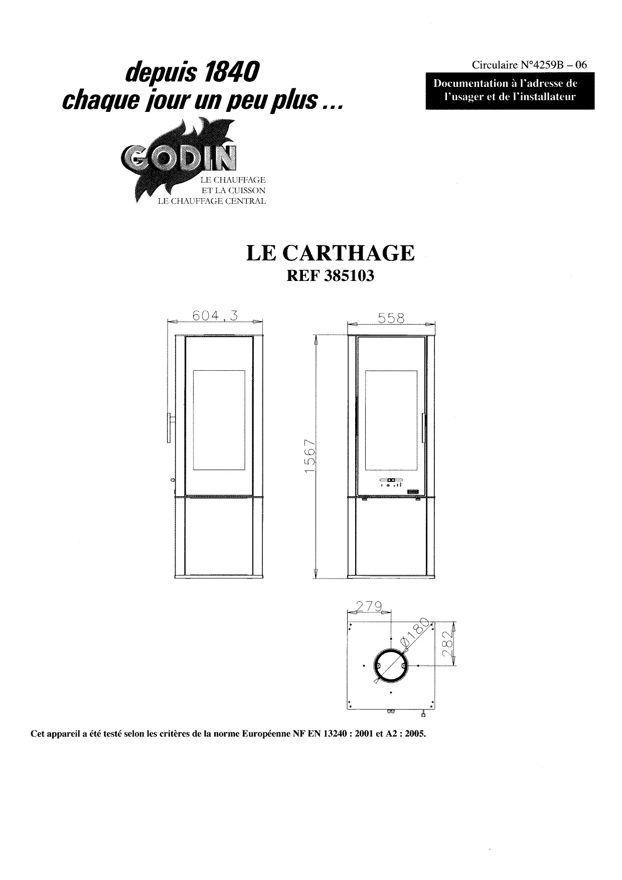 CARTHAGE - Poêle à bois GODIN - Notice d'utilisation et mode d'emploi gratuit