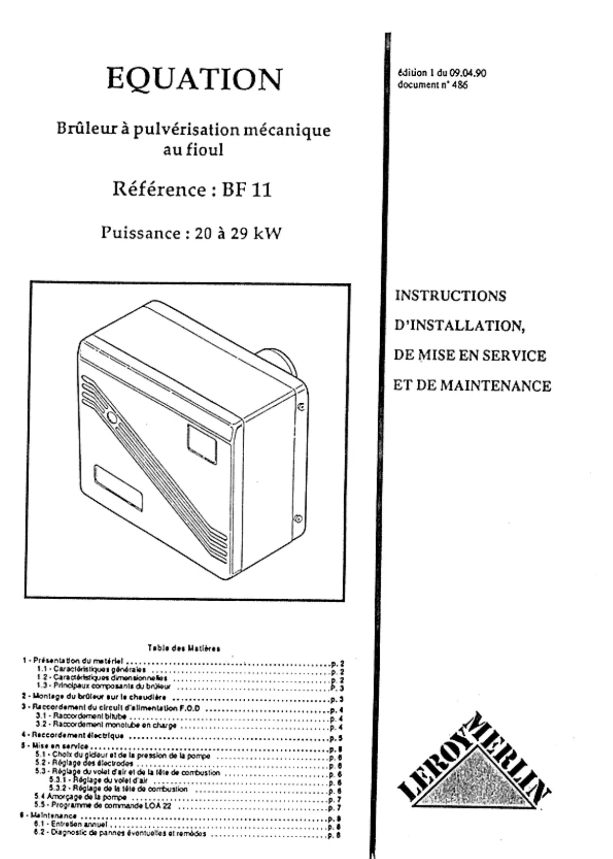 BF 11 - Brûleur fioul EQUATION - Notice d'utilisation et mode d'emploi gratuit
